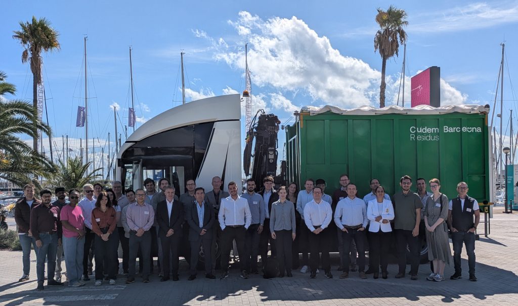 Around 30 participants of the NextETRUCK Barcelona kick-off event, which took place on 25 September, were greeted by a green-white electric refuse truck from IRIZAR, which stood out in front of the blue Mediterranean sea at ‘Port Olimpic’ in the heart of the Catalonian capital. The consortium, local guests, technology providers and partners from other AEVETO cluster projects celebrated this major milestone towards sustainable urban freight solutions.