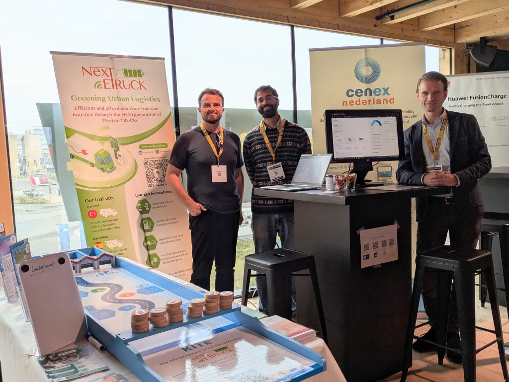 As previously reported, the KITE fleet decarbonisation tool supports fleet managers in helping logistics companies transition to electric trucks. Sharing a stand within the exhibition area provided the opportunity to engage with fleet managers, OEMs, freight companies and other stakeholders from the Netherlands and beyond. The NextETRUCK-themed, handcrafted sjoelbak, a traditional Dutch table shuffleboard game, successfully drew attention to the stand.